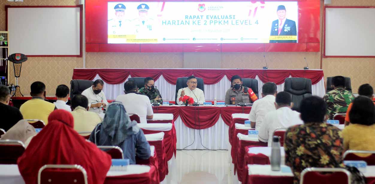 BANGGAINEWS.COM- Kapolres Banggai mengikuti rapat evaluasi harian ke 2 tentang Perberlakuan Pembatasan Kegiatan masyarakat (PPKM) Level 4, di ruang Rapat Umum Kantor Bupati Banggai, Jumat (13/8/2021) pagi.